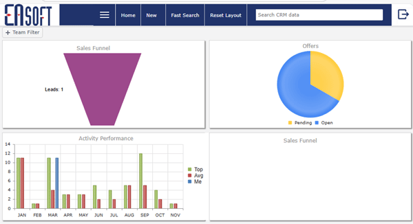 Activity and task management help the sales team to organize and prioritize their days. EASoft CRM lets the user create custom prioritized lists that improve his entire efficiency and productivity. The system provides a detailed look at the sales activities that a sales team has completed over a given time period. This gives sales manager valuable insight into team performance and individual salesman’s efficiency.